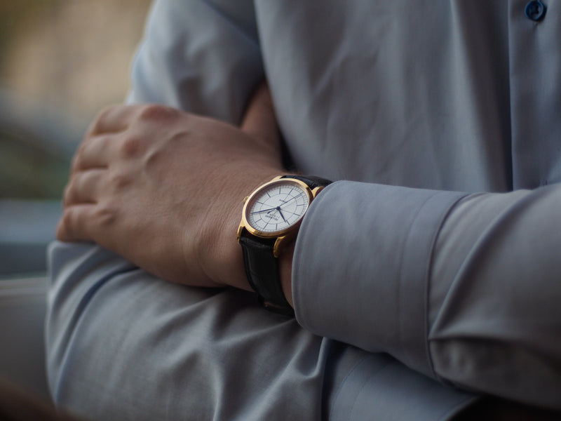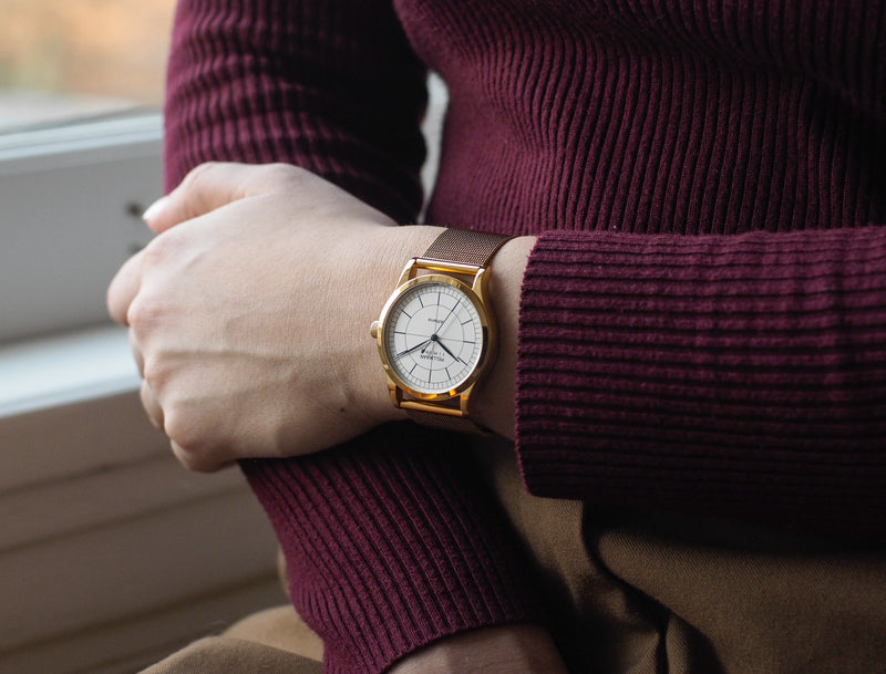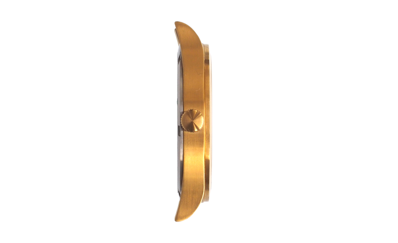 A project that has long been awaited by especially Huberts wife. A Pellikaan timing that fits women. Where most of the collection are rather large watches, The Athena resides at a very humble 35 mm. This size has been found to be at the perfect intersection where it looks good on both women and men. The watch is elegant and classy and can be combined with multiple different straps. This is also the first gold plated Pellikaan timing!