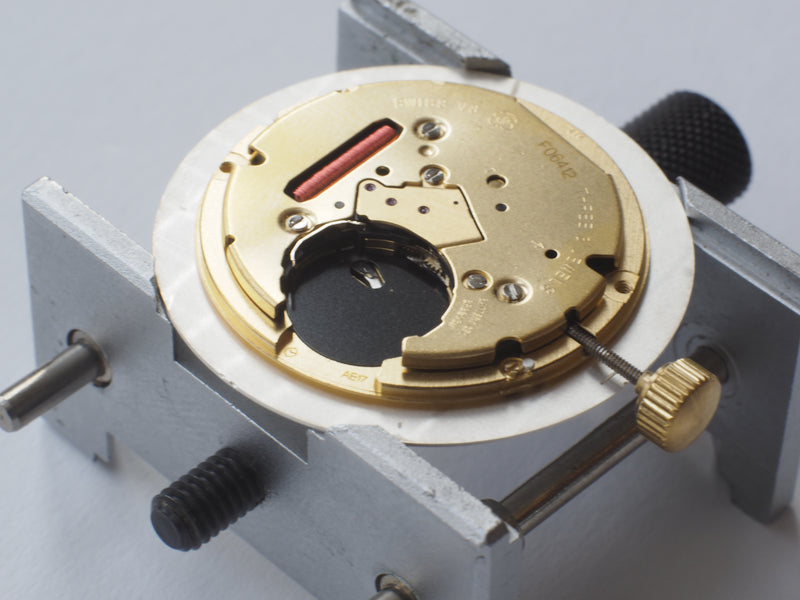 The movement includes an end-of-life indicator (the seconds hand will jump in 4-second steps when the battery needs replacing) and offers a battery life of around 5 years.