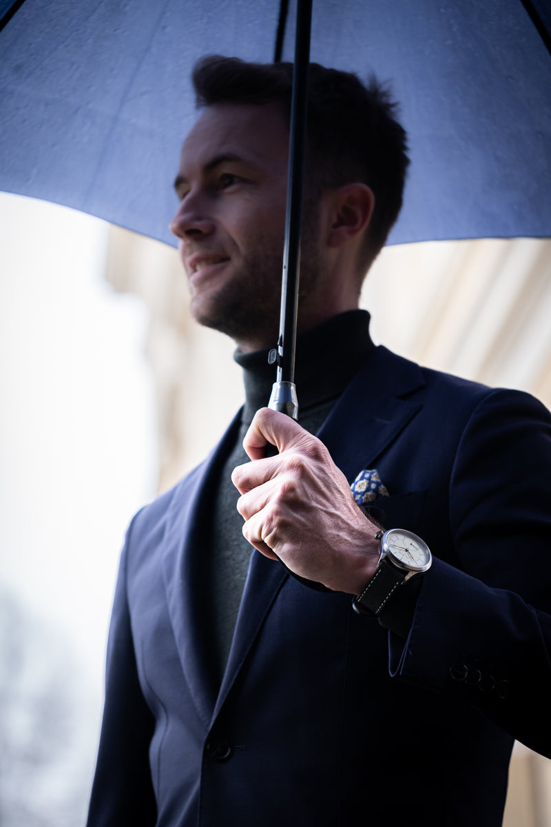 Dial and hands have a strong contrast, which enhances the legibility of the watch, even in low light situations.